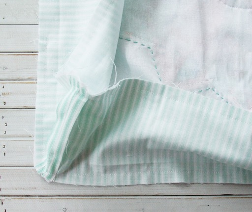Edgestitch quilt layers around four outside edges with a scant 1/4″ basting stitch.