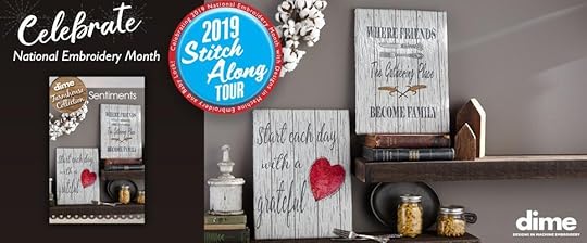 Follow along with the 2019 National Embroidery Month Stitch-Along and Blog Tour! The Tour begins today! View the Stitch Along Blog Tour Listing over at Eileen’s Machine Embroidery Blog! There will be prizes given away on each participant’s blog as well as beautiful inspiration on how to use Eileen’s newest collection, The Farmhouse Collection— Sentiments, “Gather” and “Grateful.”