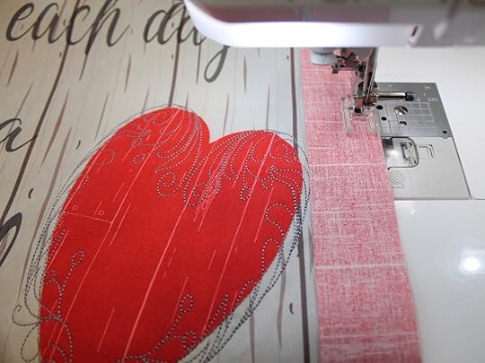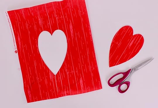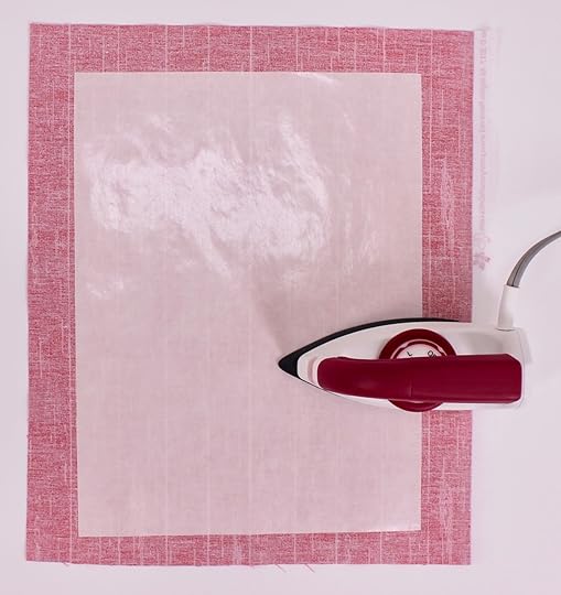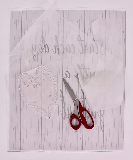 Remove paper backing from the heart appliqué, and center the appliqué within the stitched outline. Press.