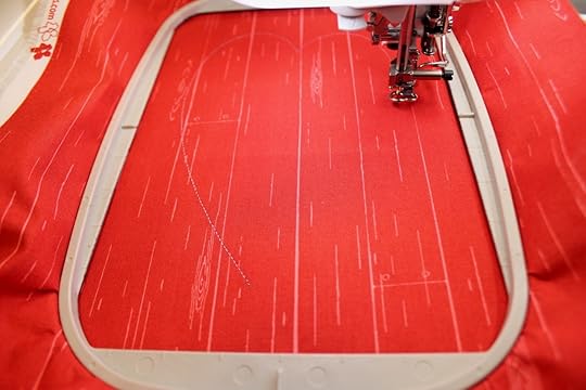 Remove hoop from machine. However, be sure to keep fabric within the hoop for the next few steps!