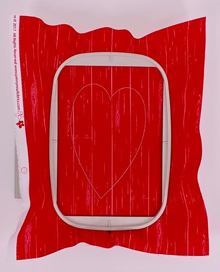 Select and stitch color change one of the Grateful Heart appliqué shape. Remove hoop from machine and remove stitched fabric from hoop.