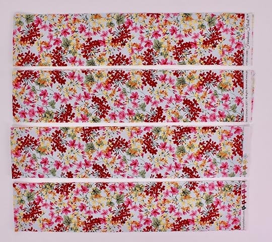 Cut four 4-1/2″ crosswise strips from Blue Floral.