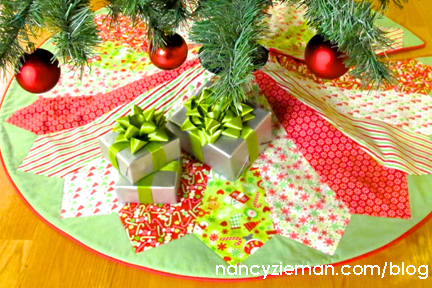 Festive Tree Skirt: With a small investment of time, you can create a Christmas Tree Skirt that will showcase the center of your holiday decorations. Choose fat quarter cuts or use fabric from your stash to create the wedge shapes. The sewing is streamlined; the end result is a boutique-style decoration. Enjoy!