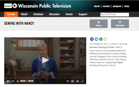 Nancy details how to fold and stitch the binding at the corners. Remember, you can watch online , or of course, watch on Public TV !
