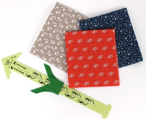 Use your favorite half-square triangle tool, such as a No-Hassle Triangle Gauge.