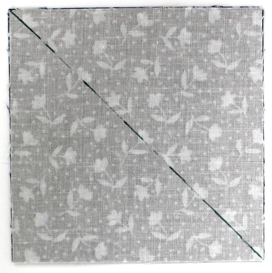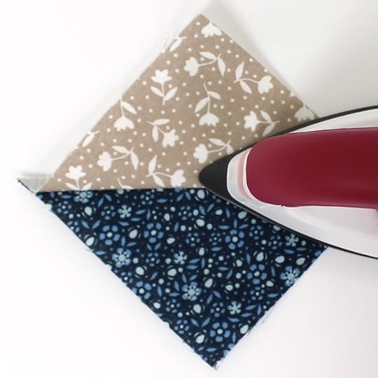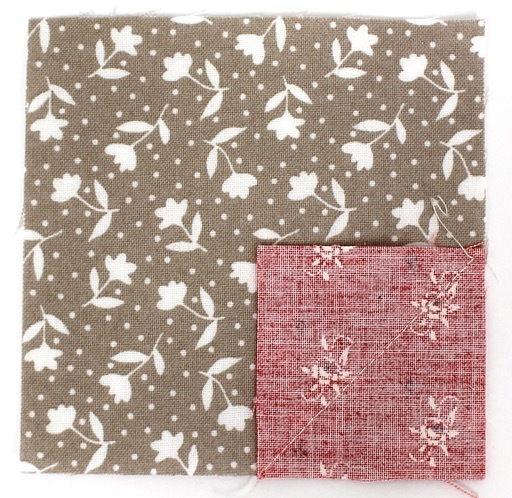 Layer Fabric A and Fabric B right sides together. Draw a diagonal line from corner to corner on the wrong side of Fabric B.