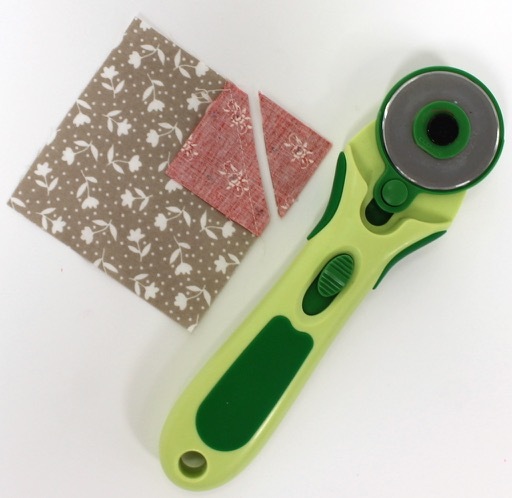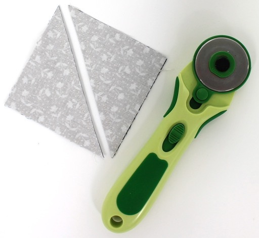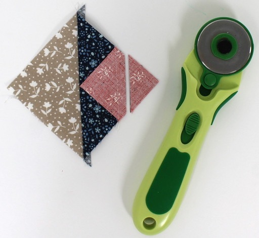 Cut off top corner 1/4″ from seam, using a rotary cutter.