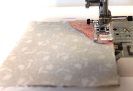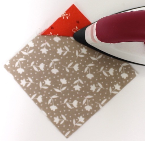 Press a 1/4″ wide strip of paper-backed fusible web on top of the folded inner edge.