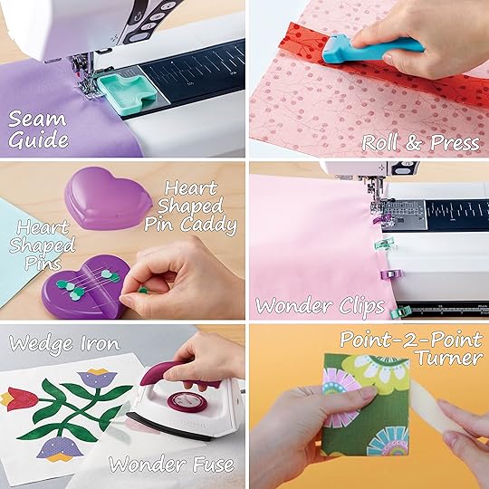 Clover-USA, Wonder Fuse (Lightweight sheet 9″ x 8″), Point 2 Point Turner, Roll & Press, Wedge Iron, I Sew For Fun Seam Guide, I Sew For Fun Magnet Pin Caddy, I Sew For Fun Heart-Shaped Pins (20 pieces) and I Sew For Fun Wonder Clips (10 pieces). A $127 value