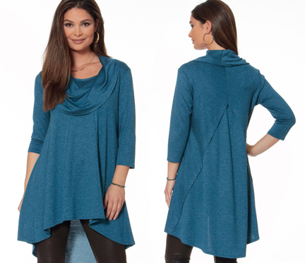 If you’re looking at a knit pattern with a shaped hem, make it easy on yourself; let your serger do the work. Use a 3-thread overlock stitch and serge along the hemline.