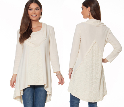 Take advantage of the tubular construction of T-shirts to make a reversible cowl scarf. The notched accents provide an ingenious detail allowing both sides of the fabric to be showcased.
