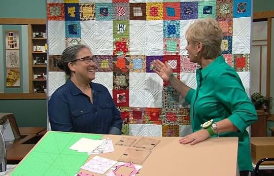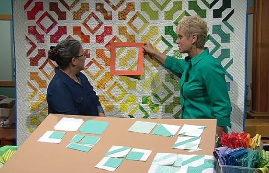 If you have leftovers from making Packages, Boxes, and Bows, consider creating yet another quilt from your stash, entitled Color Brick Road. Small rectangles are cut in two sizes and the colors are sorted using the rainbow gradation as your guide. Just like Judy, you might find yourself chanting “Follow the color brick road, follow the color brick road.” Watch as w this quilt is made on Sewing With Nancy.