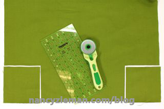 Cut two 26″ x 36″ rectangles from outer fabric, and two 26″ x 36″ rectangles from inner/lining fabric.