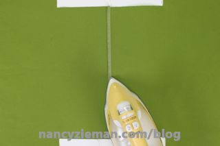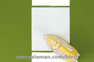 Press Pellon Lite EZ-Steam II—a 1/2″ wide paper-backed fusible web—along the wrong side of the hem’s outer edges.