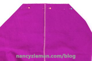 Align side seams, right sides together; serge seam. Repeat for inner/lining fabric.