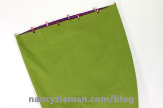 Insert lining tote inside outer tote, wrong sides together. Pin or clip edges together with Wonder Clips .