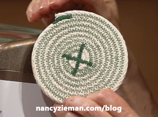 The coasters show Lindsey’s simple, yet functional style, using uncovered cotton rope—it’s the first project we’ll show you how to make. Use uncovered natural clothesline rope to create a more contemporary design with a traditional technique. Colored thread gives a stylish look. Learn what supplies and techniques Lindsey uses on today’s new episode of Sewing With Nancy.