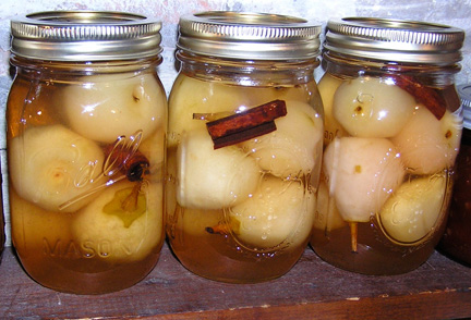 It’s canning season: spiced seckel pears, tangy mid-winter companions to rich meals.