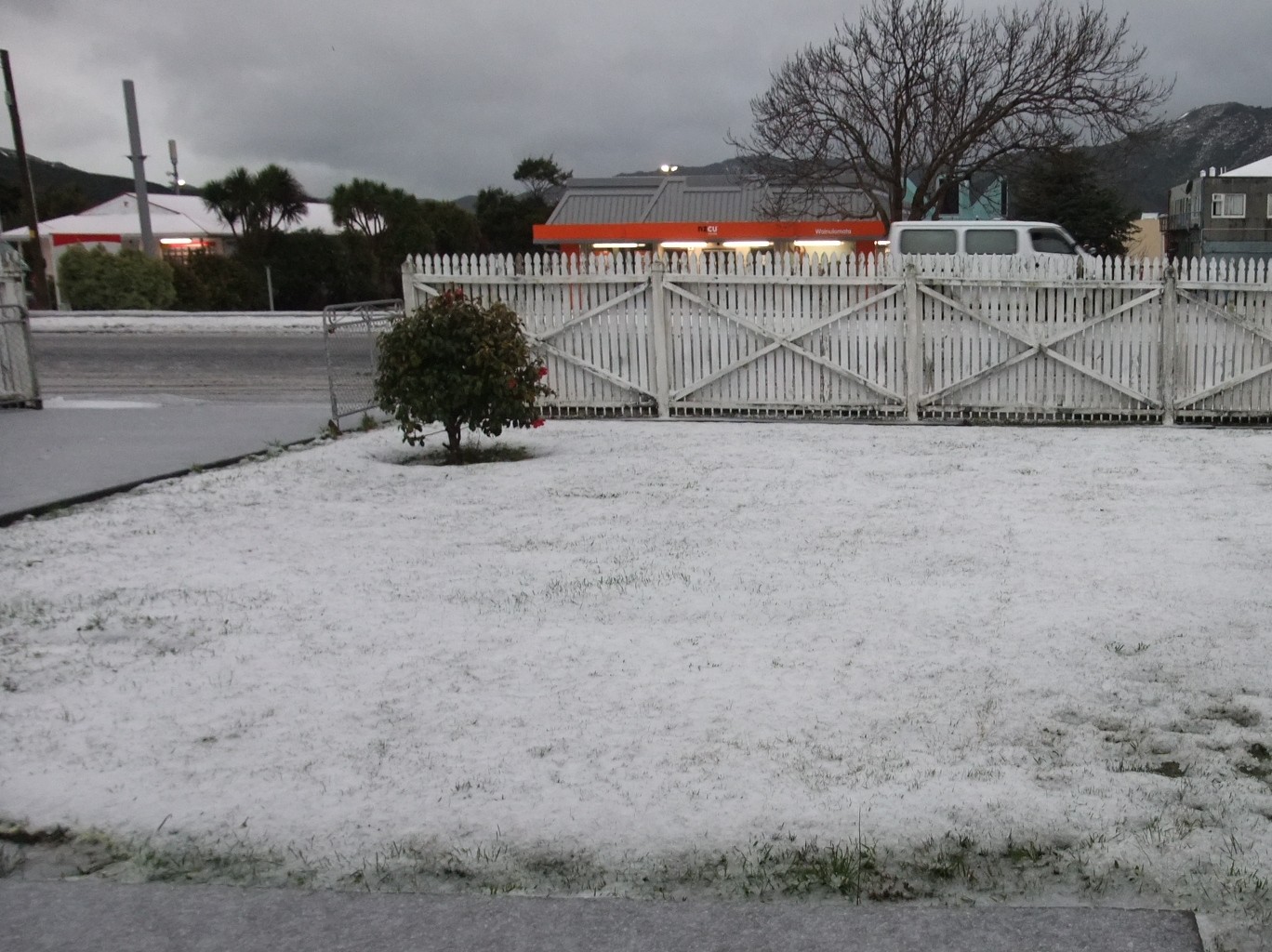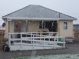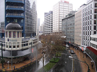 It's snowing in Wellington - even the CBD. The first time I've ever seen it like this and the first time many have seen it like this. It's also my first time in 'proper' snow *grin* There have been thunderclaps and lightning flashes as well and two power cuts!! Absolutely crazy. Here are some pics and I'll keep it short before we lose power again : )