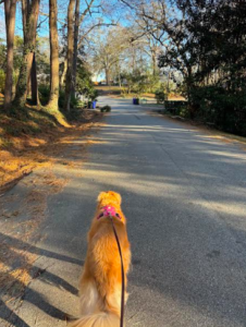A few months ago, Ben was home for the weekend. Ben and Rosie, our golden retriever, share a bond. When we first brought puppy Rosie home, she squirmed her way into his coat, her snout buried under his arm. So, when Ben and I go for a walk, of course Rosie comes too.