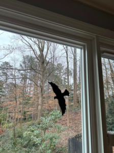 Sarah and the boys came over for dinner last night. Right away, they noticed the bird silhouette I’d taped to the window. “What’s that for?” Daniel asked. I told them about the birds as they climbed a chair to touch it. “Where are they?” they asked, wanting to see them. “We only found one,” I said. “We buried it.”