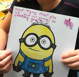 She wanted to show me her minion picture. “What a great job you’ve done coloring!” I said, trying to be as positive as seemed reasonable. But as the words left my mouth, I read the encouraging note she had written to the CDS children at the top of her paper, over the minion’s head.