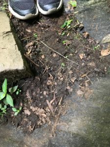 I didn’t see anything but a big rock by his little black shoes. And dirt. And some falling apart leaves.