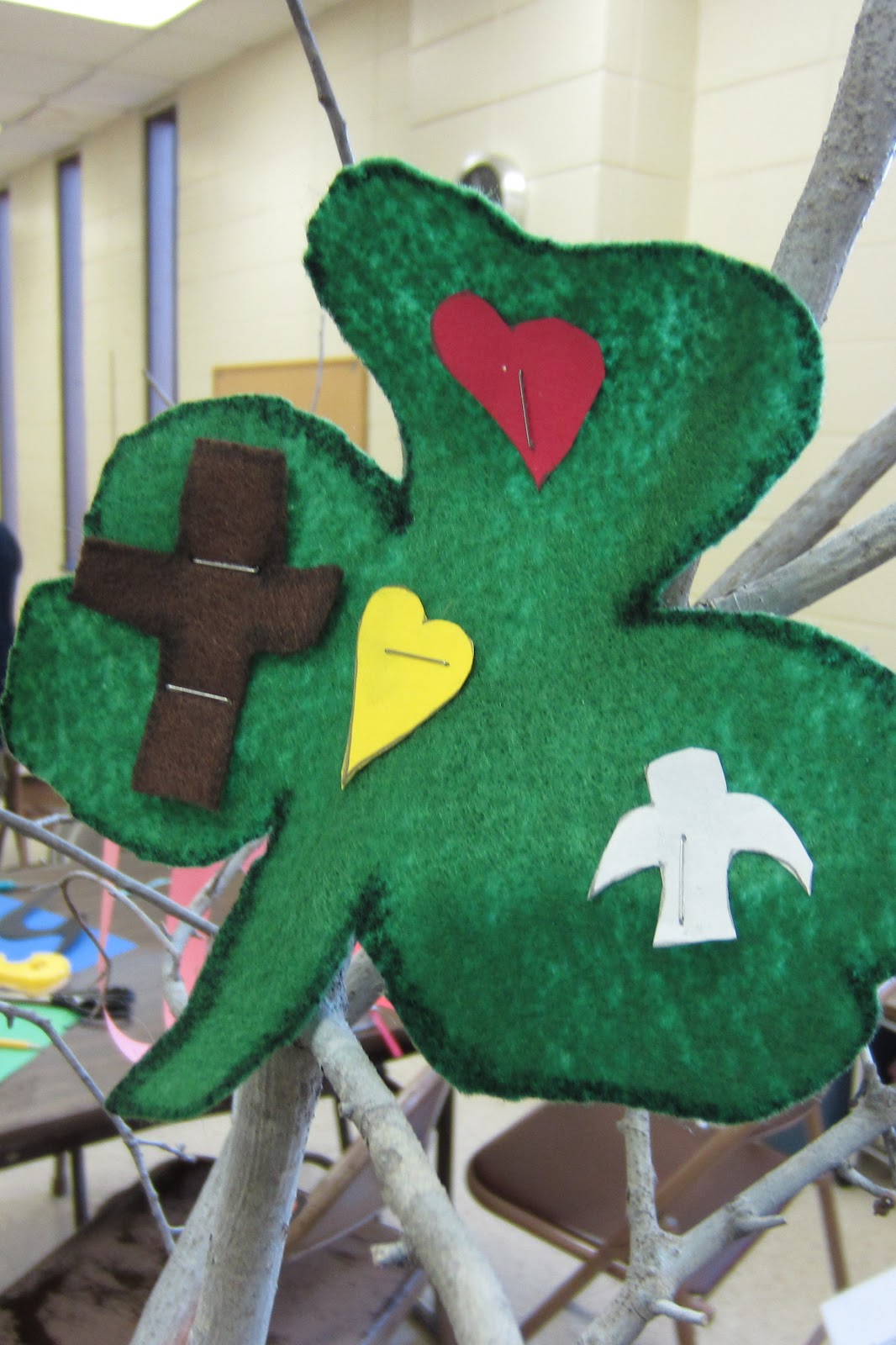 3. You could talk about how the shamrock or 3 leafed clover is often used to explain the trinity- one plant, with a leaf for each of the