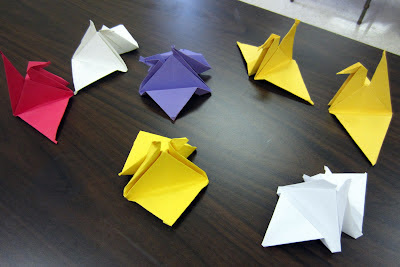 Since the symbol of the holy spirit is the dove, why not make flame colored doves (yellow, orange, red) and hang them from the ceiling to remind us of Pentecost. There are directions for doves here. Or make an origami one as shown in the video below.