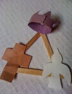 You don’t need a kit to make this- just a solo cup and string and paper. It would be much more meaningful for the children to make it their own way, drawing their own Jesus and constructing it as they want, like the children here have done. (Scroll down and see below.)