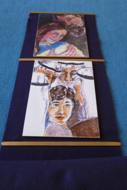 If your class is working on completing the cross map of Lenten lessons, as shown here, this would be the time to make an illustration for the square of Jesus’s birth. Children could illustrate this with whatever materials they