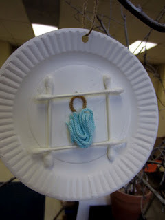 Wyline had a great idea of making ornaments by having the children cut out egg shapes out of construction paper and decorating one side like an Easter egg and illustrating the other side with elements from that Sunday’s lesson.