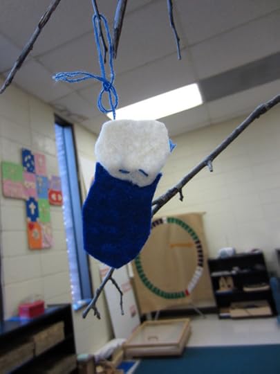 The kids could make Jesus from a clothespin and make a manger out of twigs and leaves from a walk outside.Make ornaments of baby Jesus and the pigeons out of felt as seen here. So precious! Or how about these felt doves here?