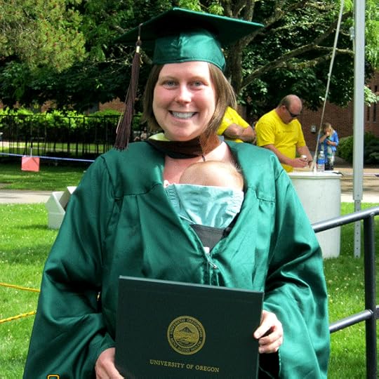 I walked across the stage to accept my degree with little Junebug tucked into my robe. The announcer said my name and then added “…and child” and the crowd exploded in applause and cheers. That felt great! Because, yes, it was damn hard to finish a masters degree with a baby – but I did it!