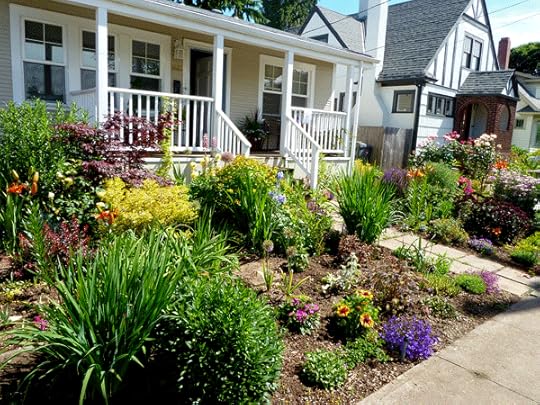 I am such a fan of grass-less front yards. This one was filled with perennial flowers and shrubs. I am not sure they have enough evergreen structure to make this hold up over winter, but I think it was only planted a year ago. The mulch ground cover likely keeps it low-maintenance.
