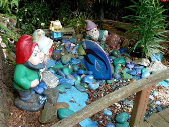 Someone had a front yard garden run by garden gnomes. Gotta love the occasional fearless gardener who just lets their whimsy run wild.