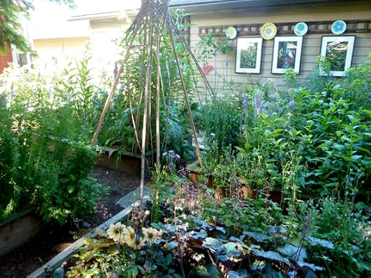 This gal had her work cut out for her: full shade backyard with a huge Doug Fir. Over a few years though, she cultivated a gorgeous four-cornered, English shade garden. There were lots of subtle colors and textures. Not many vegetables, but herbs and flowers really made it dreamy.
