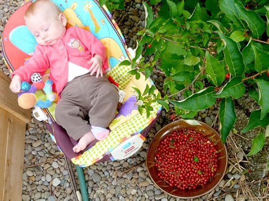 When Jay would get home from the work, we took family walks to “graze” before dinner on red currants, goumi berries, raspberries and plump strawberries.