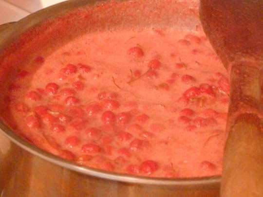 Simmer three parts goumi berries with one part strawberry, raspberry or other sweet berry. This gave my mixture a lift in flavor without masking the goumi taste too much. For every two cups of berries, add one cup of water.