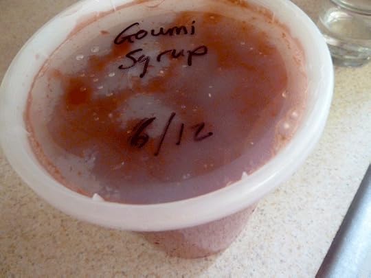 Pour goumi syrup into freezer containers, label and tuck away.
