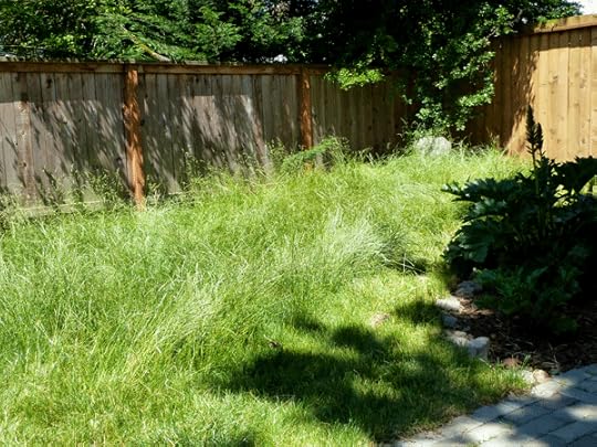 Concrete can be expensive to get rid of, so instead the homeowners used it to create topography in the backyard. A huge mound was made with the concrete in one corner of the yard. They covered it with topsoil and planted grass seed. The grass isn’t mowed, so it creates this whimsical, wavy meadow – the perfect place for kids to run up and down or grown ups to soak up the sun.