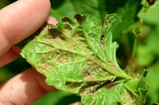 Aphid larvae on currant leaves