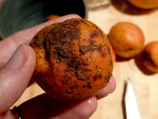 After searching and searching for information online, I couldn’t find anything that said you should not eat scabbed fruit. I decided to cook the tender apricots into a fruit tart – something simple that could show off the flavor of the apricots. Cooking them also made me feel like that would make eating blight-effected fruit a little safer.