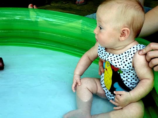Juniper was too little for the lake, so she had a mini-pool party with her cousin Sam. She splashed her arms like bird wings and was fascinated by the whole experience.