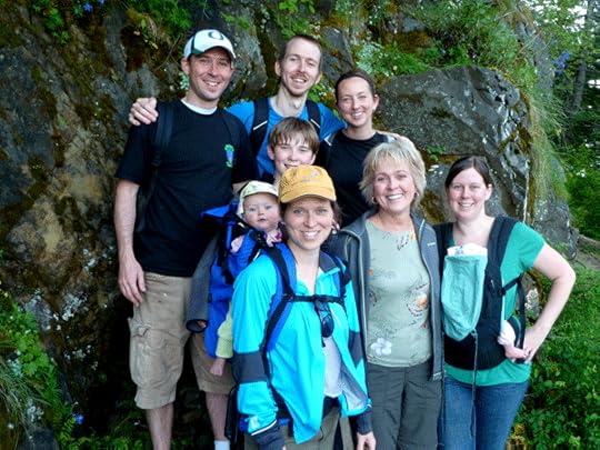 We took my mom for a hike on our trail to celebrate her sixtieth birthday. It was one of Juniper’s first hikes and her head is barely visible in the front pack. Her cousin Lily has already graduated to the backpack carrier.