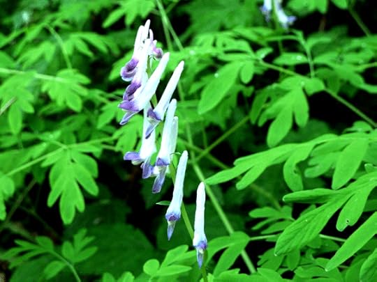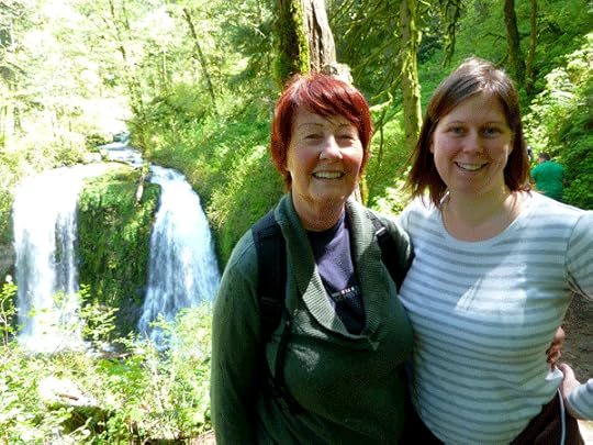 Lovely Scouler’s Corydalis surrounds you when you begin to notice the sound of falling water. Not too much further and the beautiful double falls comes into view. My mother-in-law, who was visiting this month, posed for a picture with me here.