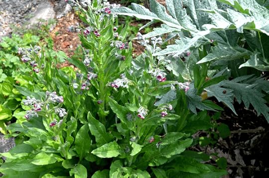 Comfrey also produces beautiful pinkish-purple flowers, which look gorgeous in our garden among the other purple flowering plants like echinaea, artichoke, irises and flowering alliums. The bees love the blossoms and the plant blooms fairly continuously through the summer.