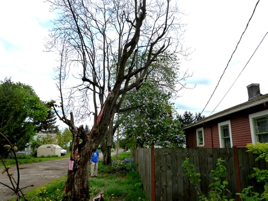 Our cherry tree is in full bloom and the squirrels are all licking their paws waiting for the fruit to set. The tree is in decline and barely scrapes through each season. We’ll see if it can bounce back with a little extra TLC from us this year.