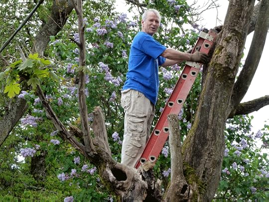 I wasn’t allowed on the ladder, much to my chagrin. Dad and Jay overruled me, since I am nursing and therefore another human being is too dependent on me to let me end up in the hospital. So instead I watched from below, hands gripped with terror, as my husband and father took turns gently climbing up the brittle, dry snag.