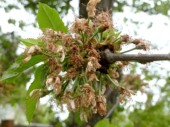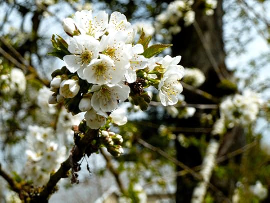 Our cherry tree blossoms are spent, but the dried flowers are beginning to swell at the base. It will be a race between us and the squirrels to harvest the fruit.